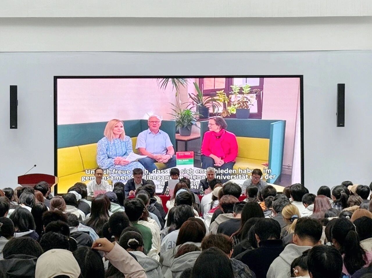 德国安哈尔特应用技术大学副校长Seewald-heeg团队通过视频向中德项目新生传递殷切祝福,让同学们深切感受到学院国际化教育资源的坚实支撑。校方表示,将提供全方位支持,助力高金学子顺利开启国际化教育新征程,并鼓励大家在国内学习期间积极强化德语,为后续赴德进入德语授课打下坚实基础。