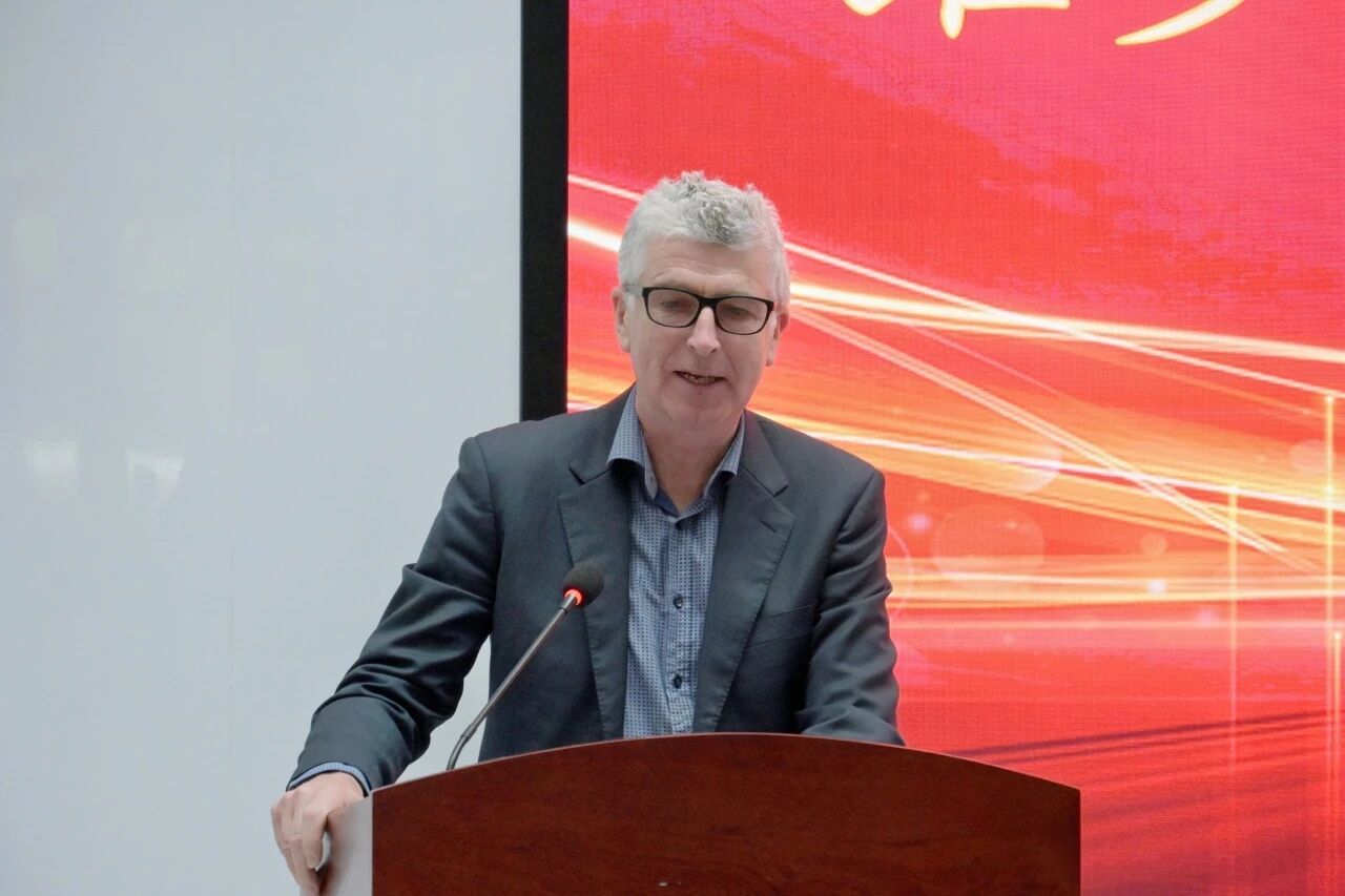 Robert Strathdee代表澳大利亚维多利亚大学向同学们致以热忱欢迎。他生动描绘了中澳合作办学的广阔未来,深入阐述了该项目的背景渊源、核心意义与合作历程,也表达了对同学们的殷切期许。他鼓励大家充分用好两校的优质资源与支持,同时祝愿高金学子在学业与生活中皆能收获属于自己的亮眼成就。