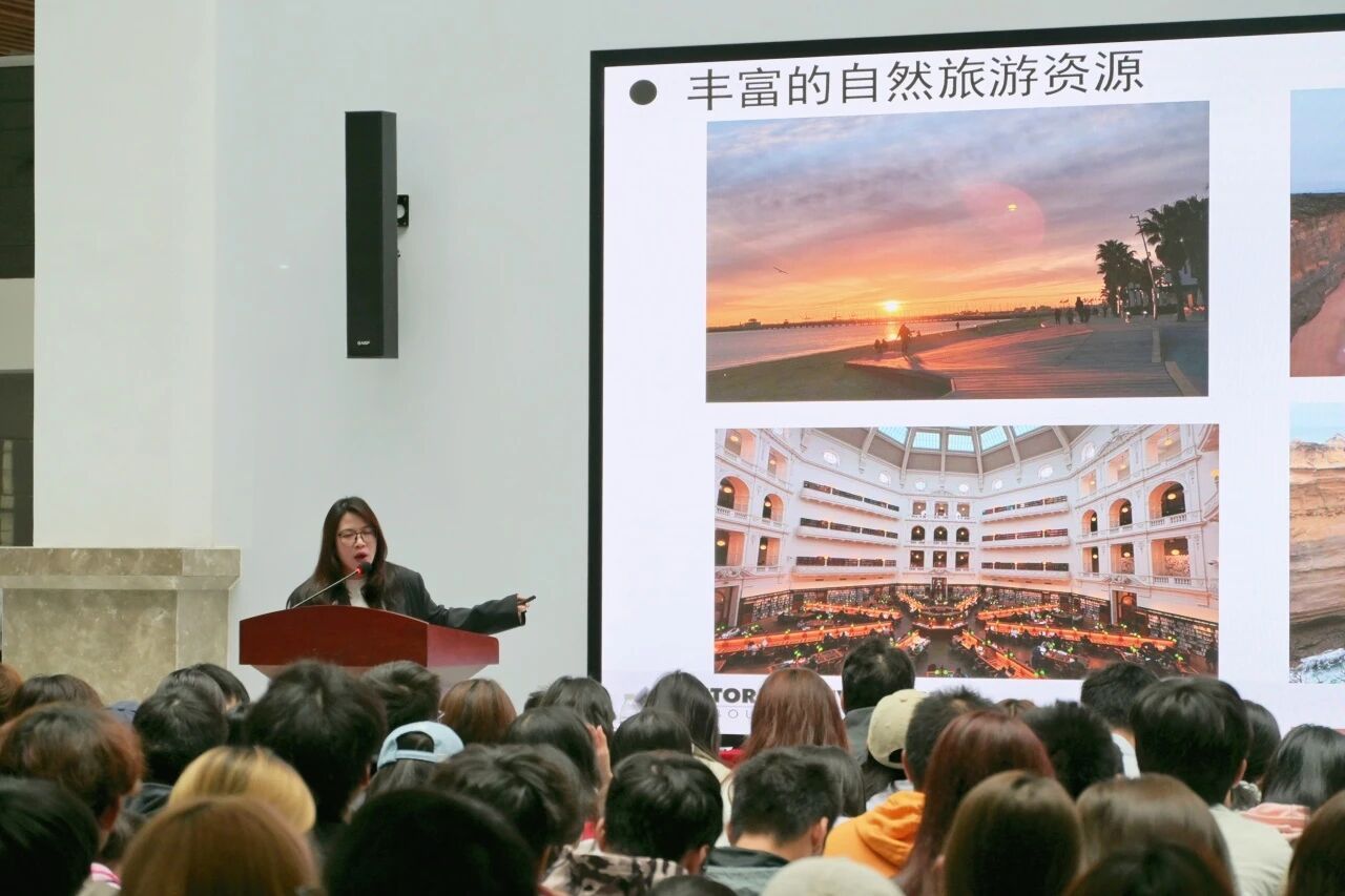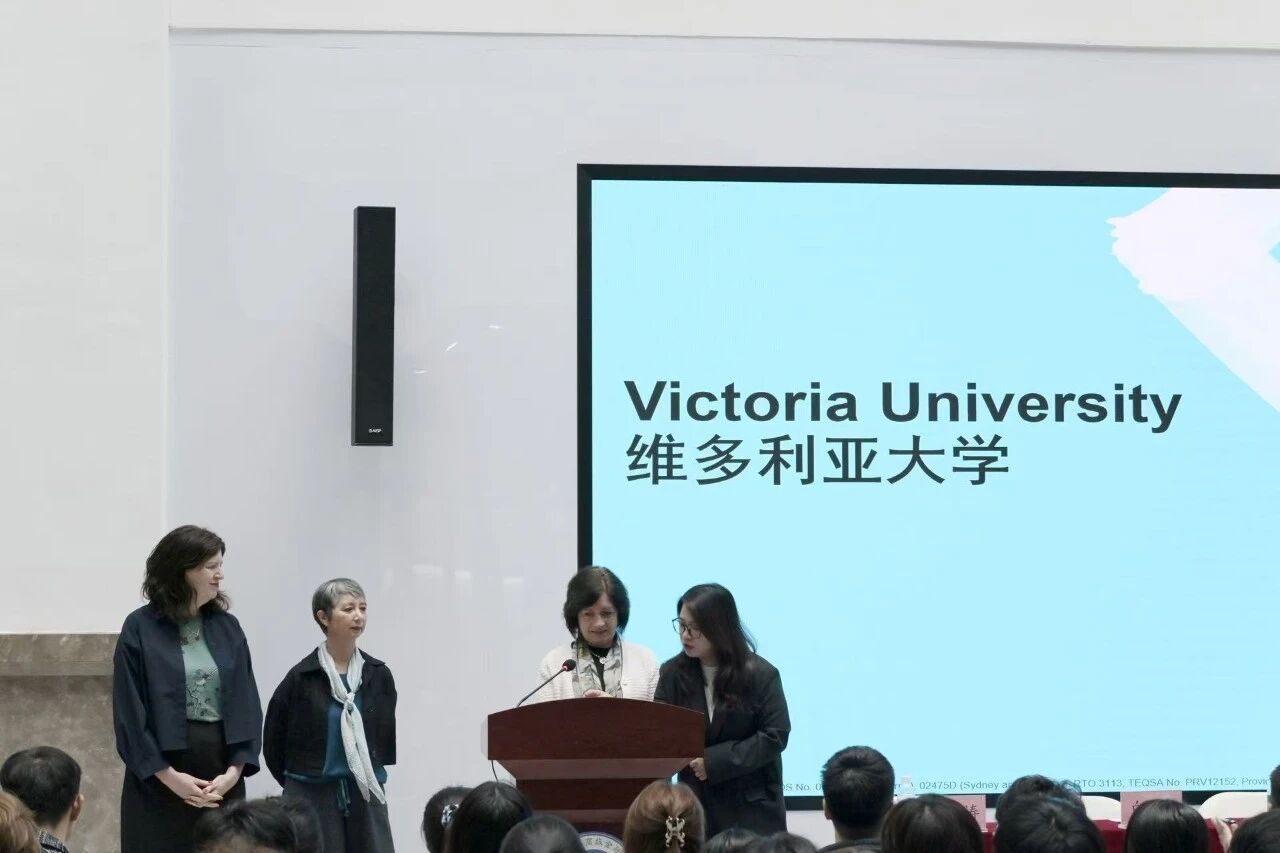 在中澳团队与学生互动环节,外方教师代表祝贺新同学顺利入学,并热烈欢迎大家未来赴维多利亚大学深造。在宣讲介绍的过程中,澳方团队就澳洲科研、教育实践、墨尔本区位优势等方面进行详细解读。
