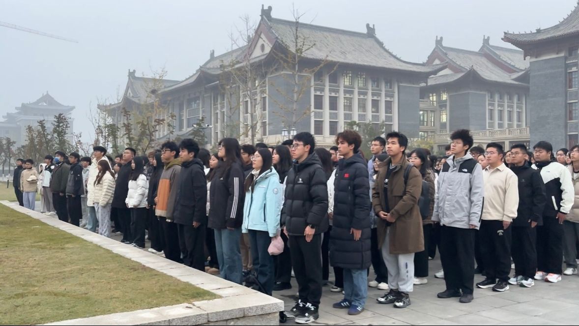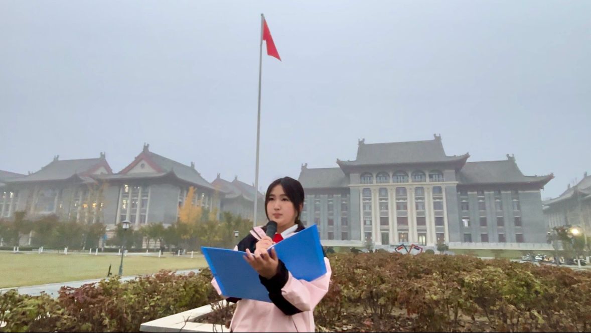 仪式后,2025级学生代表王怡杉以《以青春之名,赴爱国荣校之约》为题发言。她从河南大学抗战办学的历史讲起,阐述“明德新民,止于至善”的校训精神,并分享了她参与反诈宣传、重阳敬老志愿服务等活动的经历。