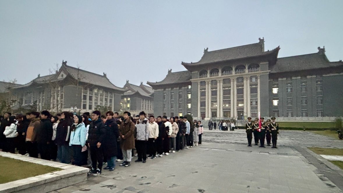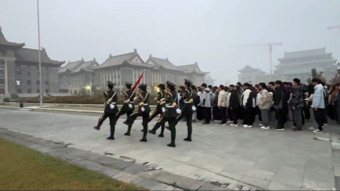 一堂庄严的爱国主义教育课,从清晨的升旗仪式开始。10月27日晨,高级金融学院在龙子湖校区升旗台前举行升旗仪式。