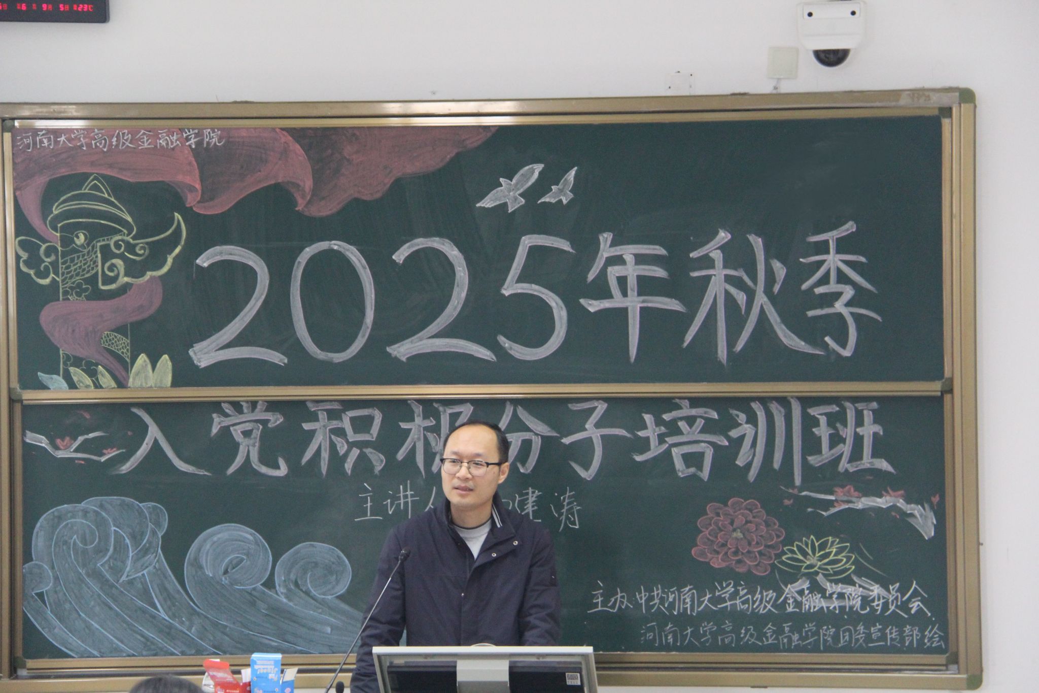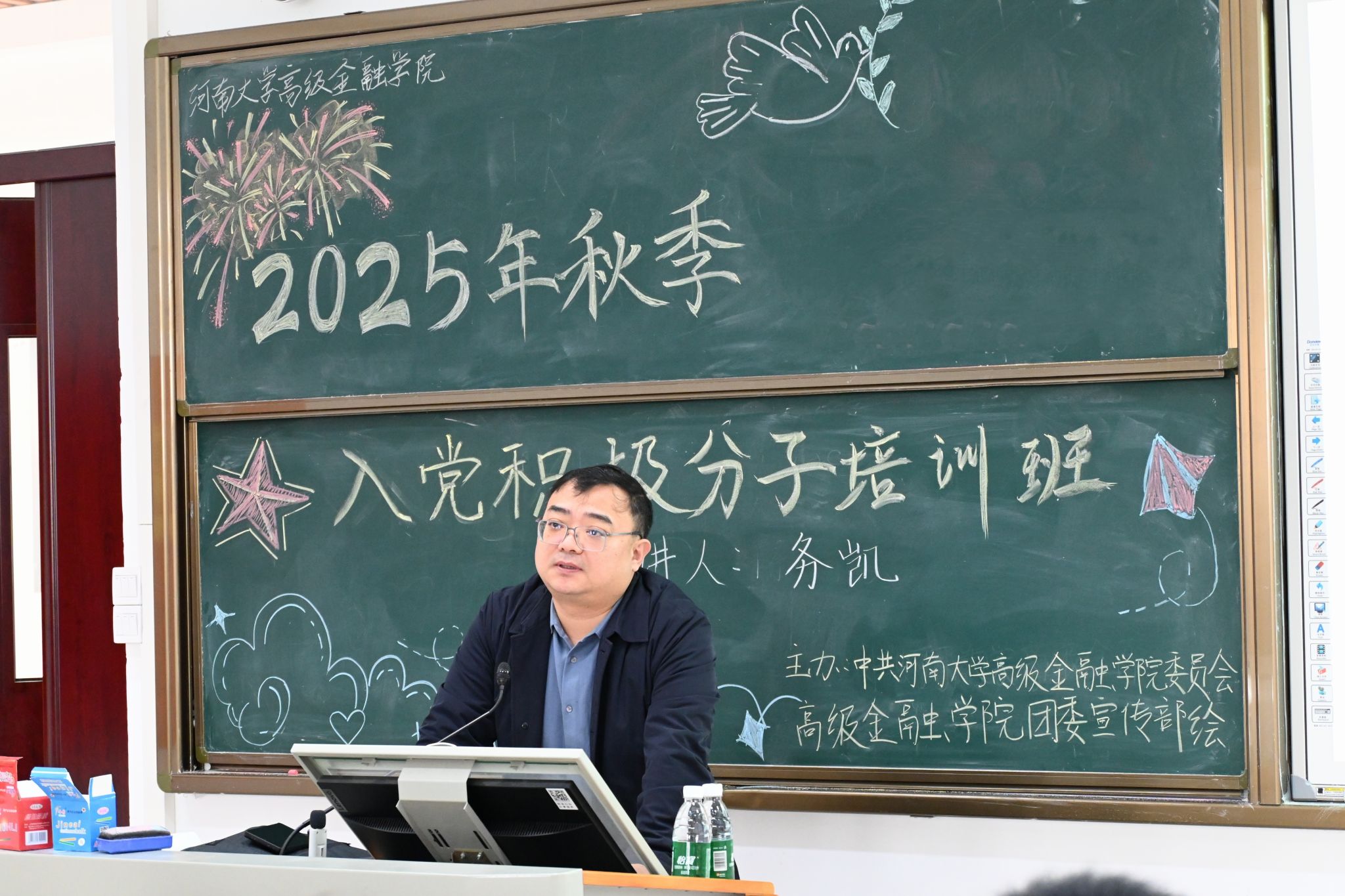 党委副书记杨建涛以“我的高金,我的团”为主题进行讲授,他回望了河南大学的光辉历史,强调学校发展始终紧跟党的步伐,与党同频共振,鼓励同学们将青年理想与组织建设相结合,引导入党积极分子在集体中锤炼品格、践行担当。他勉励同学们坚定理想信念,练就过硬本领,坚持学以致用,知行合一,做有理想、敢担当、能吃苦、肯奋斗的新时代青年,以实际行动践行初心使命,为学校发展和社会进步贡献力量。