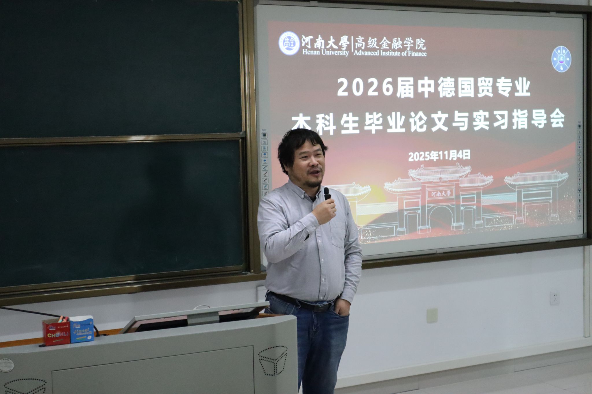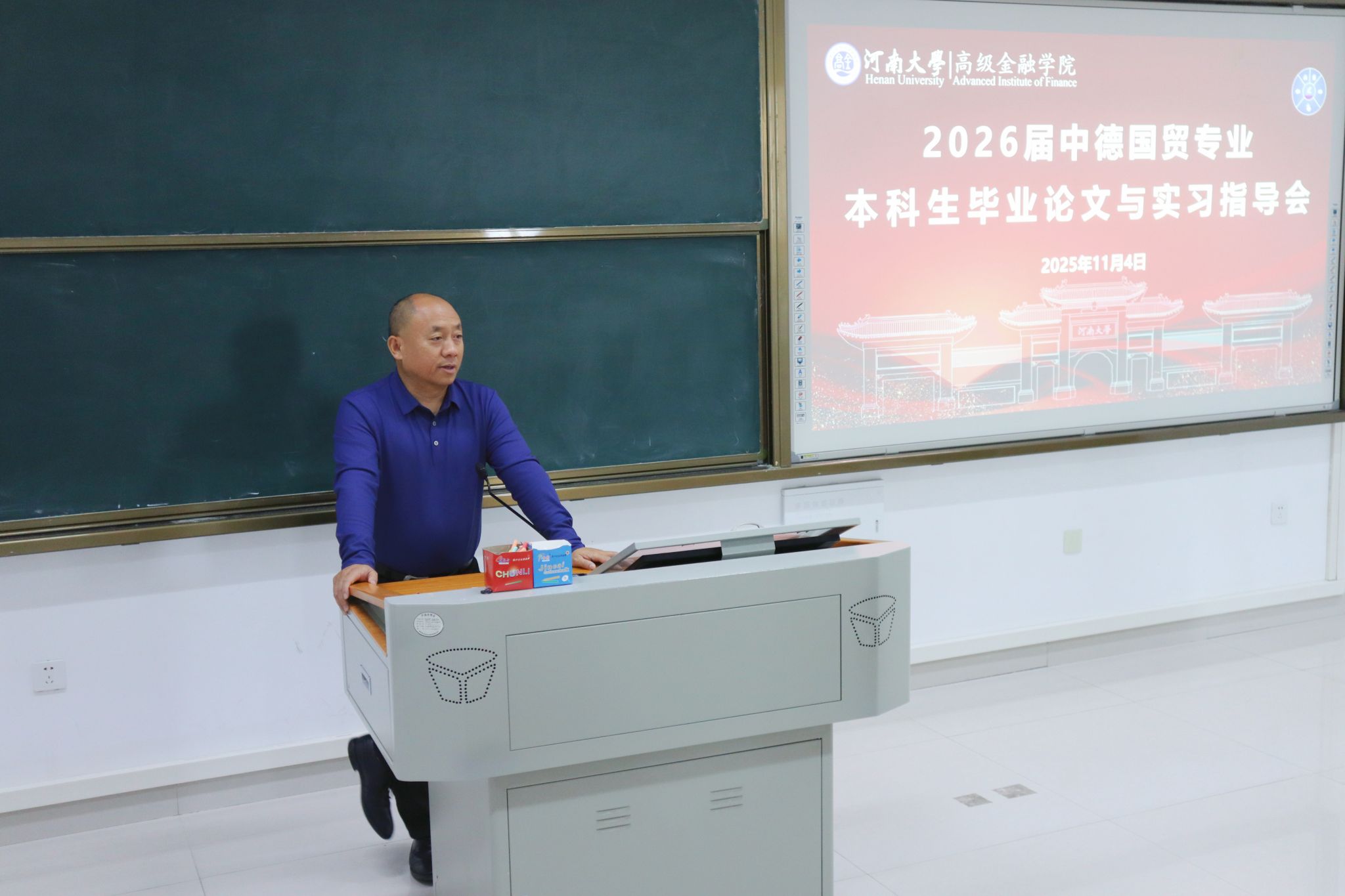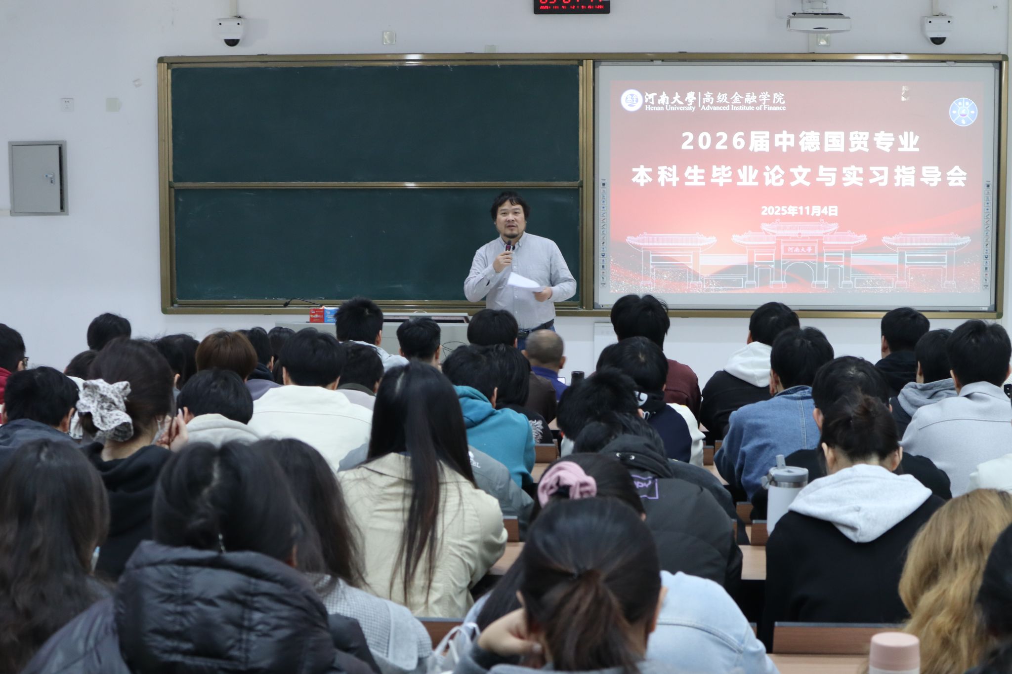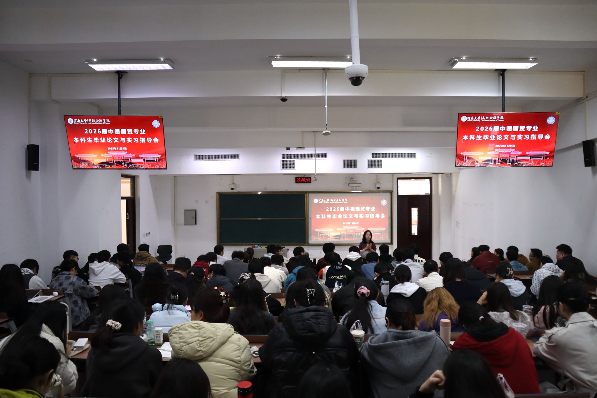 为助力我院毕业生高效完成本科阶段关键任务,明确毕业论文与实习工作的规范要求,帮助学生精准锚定目标、明晰重点任务、消解困惑疑虑,11月4日,我院在友兰学堂南楼B座304召开2026届中德国贸专业本科生毕业论文与实习指导会。学院副院长郑祖玄,金融与贸易系主任魏刚、副主任刘鹏,会计与财务系副主任赵一,2022级辅导员冯蓉蓉及学院教务办公室相关人员出席会议,2022级中德国贸专业全体本科生参加本次会议。会议由学院团委副书记、毕业班辅导员陈明芳主持。