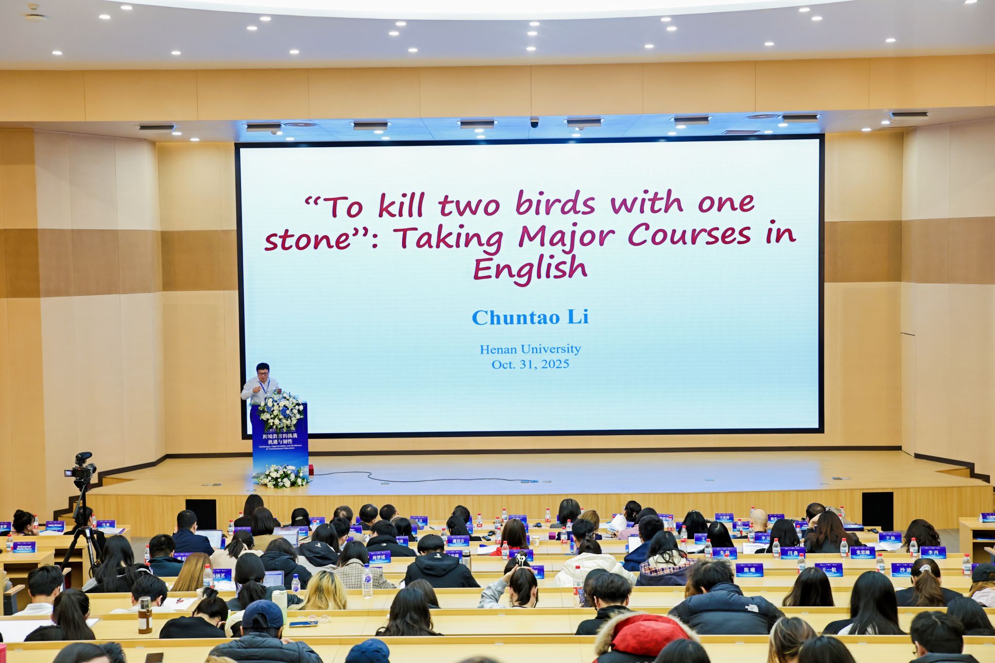 此次论坛设置4个阶段的主旨报告,共邀请18位与会嘉宾作专题报告。李春涛教授以“‘To Kill Two Birds with One Stone’: Taking Major Courses in English”为题,结合生动案例,深入剖析了在中外合作项目中实施全英文专业课程教学的关键作用与有效策略,阐明了其在学术与语言能力培养上的双重价值。