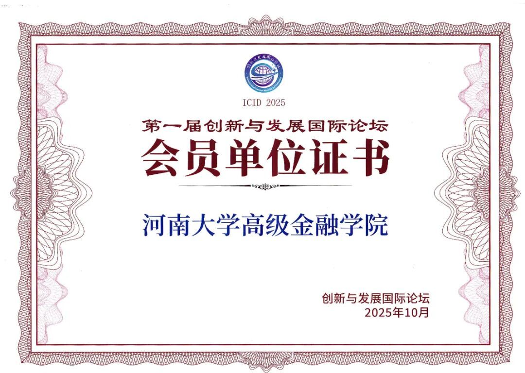 2025年10月31日至11月1日,第一届 “创新与发展国际论坛”(ICID) 在辽宁大学蒲河校区成功举办。开幕式上,“创新与发展国际论坛建设委员会”正式成立,河南大学高级金融学院副院长李春涛教授受聘为首届委员会委员,河南大学高级金融学院同时被授予第一届会员单位证书。