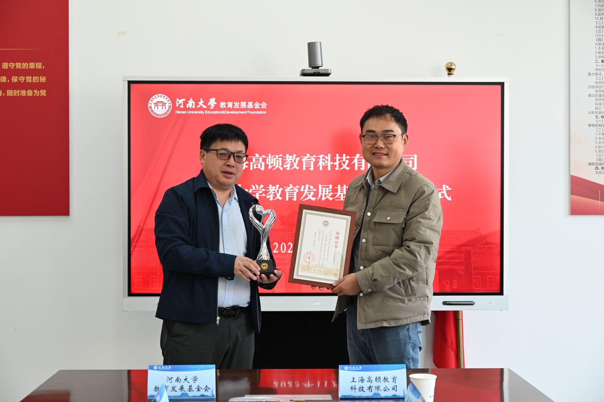 11月5日上午,河南大学高级金融学院(以下简称“高级金融学院”)与上海高顿教育集团(以下简称“高顿教育”)校企合作座谈会暨捐赠仪式,在河南大学友兰学堂南楼A304会议室隆重举行。