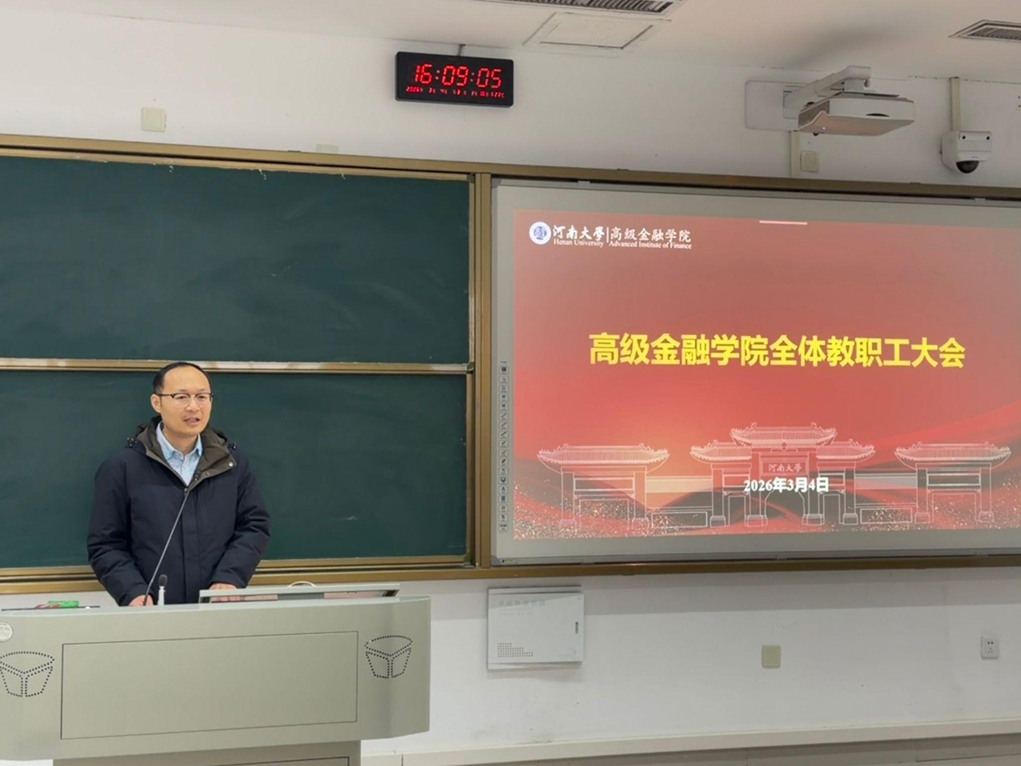 2026年3月4日,我院召开全体教职工大会,全面回顾学院办学以来的各项发展成果,系统擘画未来发展蓝图,部署日常管理、系统改革、安全稳定等一系列重点工作,进一步凝聚全院教职工力量,明确发展方向,推动学院高质量发展,会议由党委副书记、副院长杨建涛主持,全体教职工参加。