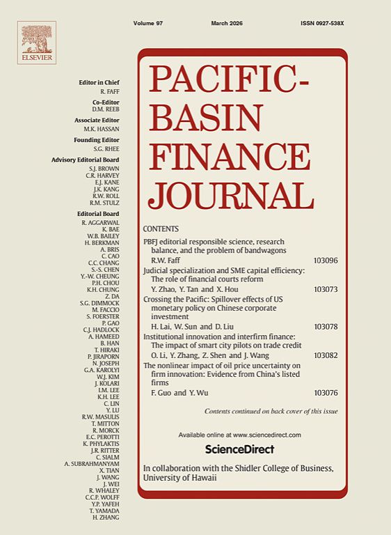 《Pacific-Basin Finance Journal》由Elsevier出版,创刊于1993年,是金融学领域公认的权威国际期刊。期刊聚焦亚太地区资本市场的前沿学术研究,涵盖公司金融、资产定价、投资组合管理、市场微观结构、行为金融等核心方向,尤其欢迎运用高质量实证方法回应现实金融挑战的“有用研究”。该刊已被SSCI收录且稳居一区,在金融学领域具有较高的学术影响力。