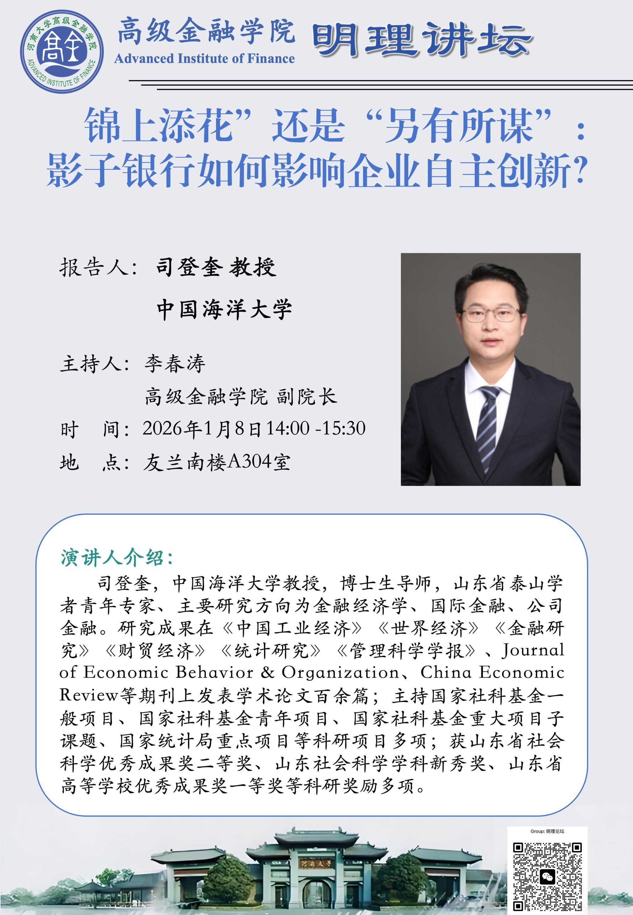 明理讲坛第31 期: 锦上添花”还是“另有所谋”:影子银行如何影响企业自主创新?