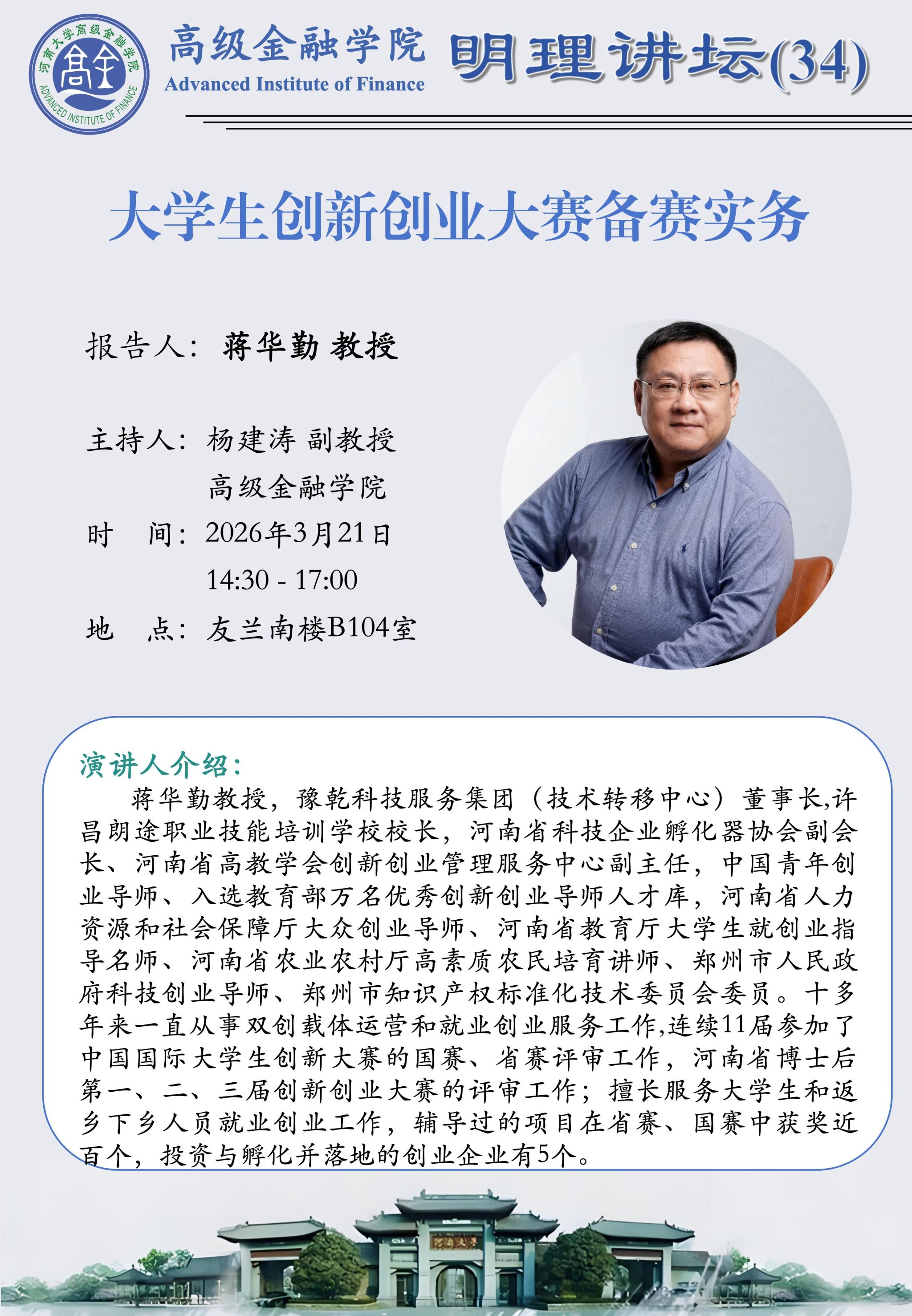 明理讲坛第34期:大学生创新创业大赛备赛实务